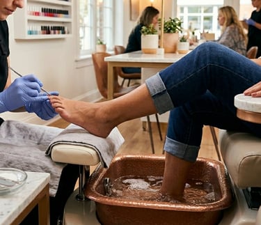 Relaxing foot treatment with cleaning, massage, and hydration.